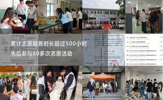 她的志愿足迹遍布校园内外:在校内,她是学院活动的常驻工作人员,参与过新生教材发放、图书馆书籍整理、配钥匙活动,也在迎新报到时帮新生搬运行李、在实验室清洁中认真归置器材;在校外,她走进武湖老年大学协助京剧活动开展,深入乡村与社区投身公益服务,用实际行动把每一次志愿都做到实处。